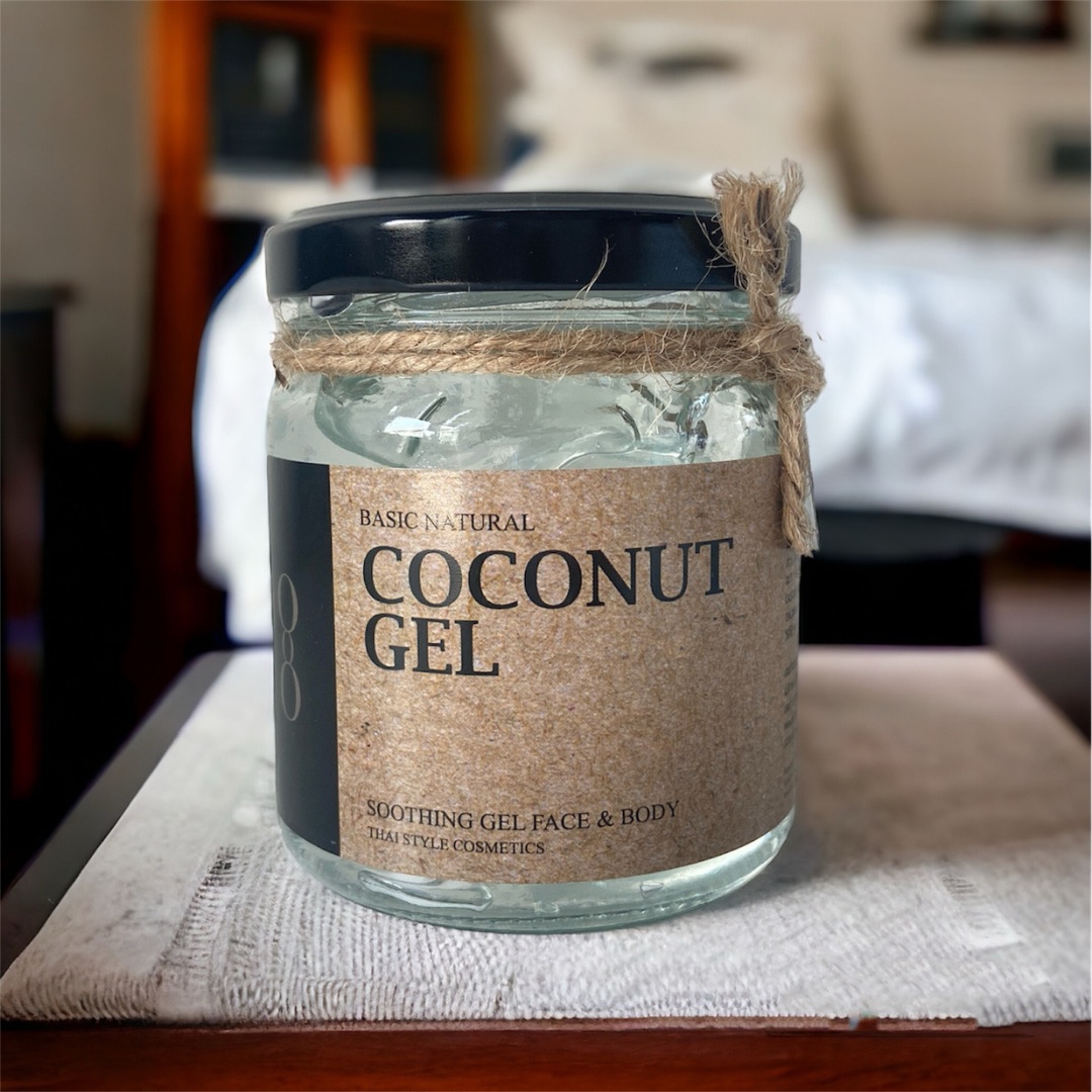 เจลมะพร้าว อุดมไปด้วยสารสกัดมะพร้าว ที่มีคุณสมบัติให้ความชุ่มชื้นแก่ผิว ทำให้ผิวนุ่มชุ่มชื้นไม่แห้งแตกลาย บรรเทาอาการผิวไหม้จากแสงแดด ลดการอักเสบของผิวหนัง ต้านอนุมูลอิสระ ช่วยให้ผิวดูอ่อนเยาว์และชะลอการเกิดริ้วรอย สามารถใช้ได้ทั้งผิวหน้า และผิวกาย