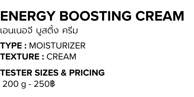 ครีมบำรุงผิวกาย ช่วยเพิ่มพลังงานให้แก่เซลล์ผิว ฟื้นฟูเซลล์ผิวที่เสื่อมโทรมขั้นสุด ช่วยกระตุ้นคอลลาเจนใต้ผิว ทำให้ผิวกระชับ เต่งตึง คงความชุ่มชื้น เสริมความยืดหยุ่นให้ผิวกระชับเรียบเนียน ลดเลือนริ้วรอย ปกป้องผิวจากความหมองคล้ำ