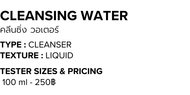 วิธีใช้ : เทผลิตภัณฑ์ลงบนสำลีแล้วเช็ดลงบนผิวหน้าที่แห้ง เช็ดและเปลี่ยนสำลีจนกว่าสำลีจะขาวสะอาดไม่มีคราบเครื่องสำอางติดมาบนแผ่นสำลี