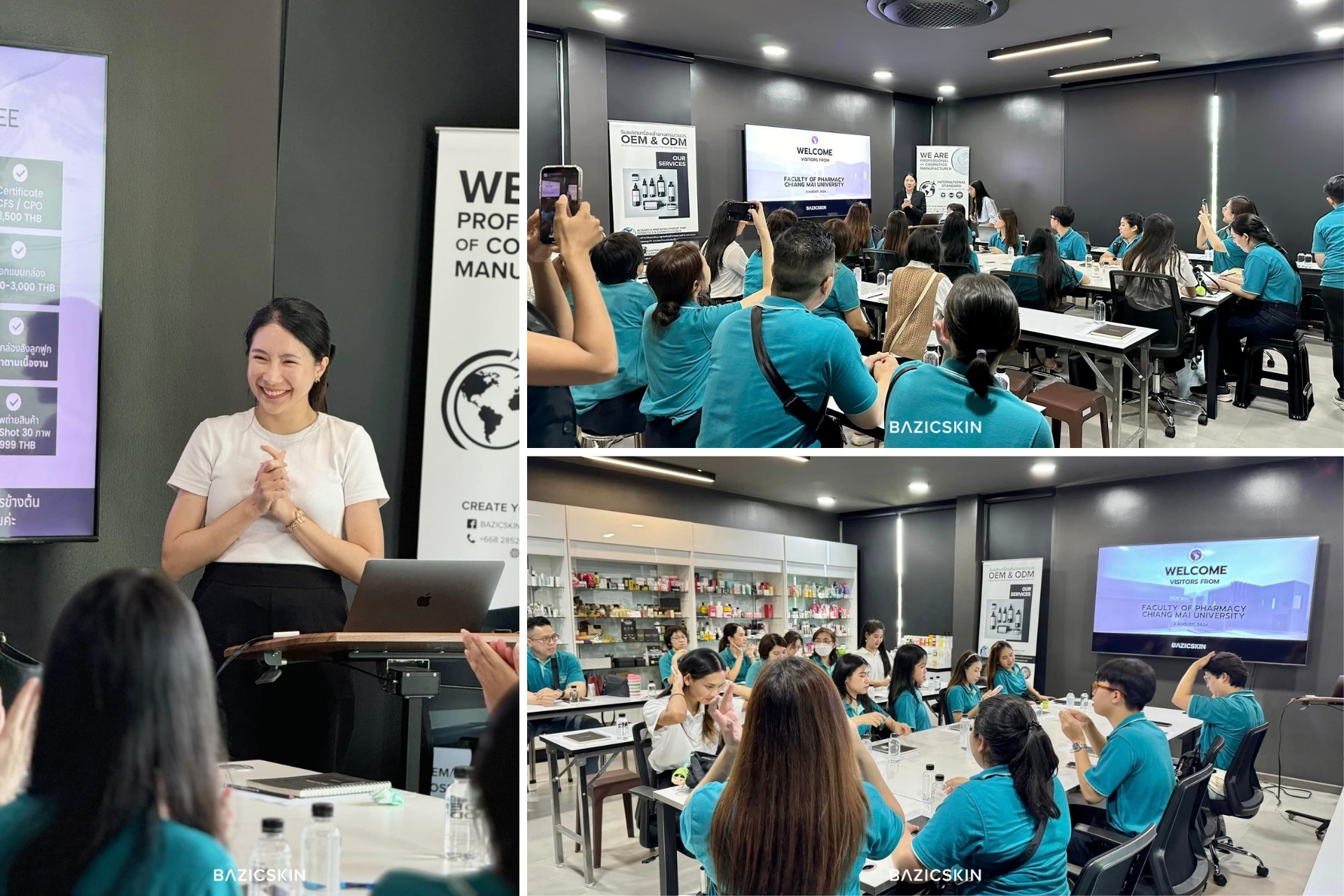 Mimi White Corporation Co., Ltd. (BAZICSKIN) welcomes a study group from the Faculty of Pharmacy, Chiang Mai University, to study the overall operations of the company and exchange experiences in research and development of cosmetic formulas.