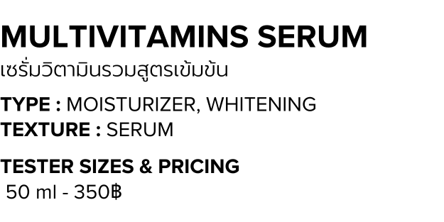 สูตรบำรุงผิวหน้า ประกอบด้วย Vitamin B3, B5 และ Vitamin E พร้อมมอยส์เจอไรส์เซอร์จาก Rosehip Oil ช่วยให้ผิวขาวใสเปล่งปลั่งได้อย่างมีประสิทธิภาพ