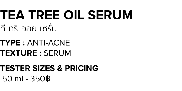 เซรั่มบำรุงผิวหน้า ช่วยปลอบประโลมดูแลปัญหาผิว ช่วยป้องกันการเกิดสิว ช่วยสลายสิ่งสกปรกในรูขุมขนที่เป็นสาเหตุของการเกิดแบคทีเรีย ช่วยผลัดเซลล์ผิวเก่าอย่างอ่อนโยน ลดปัญหาสิวอุดตัน ยับยั้งเชื้อแบคทีเรียที่ก่อให้เกิดสิว ช่วยลดการอักเสบของสิว ช่วยลดความมันบนใบหน้า และช่วยลดการอักเสบและระคายเคืองผิว