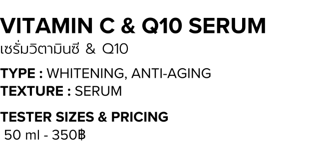 Vitamin C ชนิด L-ascorbic acid อนุภาพเล็ก (Ultra-Fine) ขนาดเล็กกว่า 45ไมครอน ความบริสุทธิ์สูง ที่มีประสิทธิภาพสูงที่สุดเมื่อเทียบกับวิตามินซีประเภทอื่น ช่วยลดการเกิดเม็ดสีหรือเมลานิน ที่เป็นตัวการสำคัญที่ทำให้ผิวหน้าหมองคล้ำ เกิดฝ้า กระ จุดด่างดำ จากการสร้างเมลานินที่มากเกินไป ทำให้ผิวดูสว่างสดใสขึ้น ลดริ้วรอย กระตุ้นการสร้างคอลลาเจน ทำให้ผิวหน้ามีความยืดหยุ่น นุ่มฟู ดูเป็นผิวที่มีสุขภาพดี และต่อต้านอนุมูลอิสระ