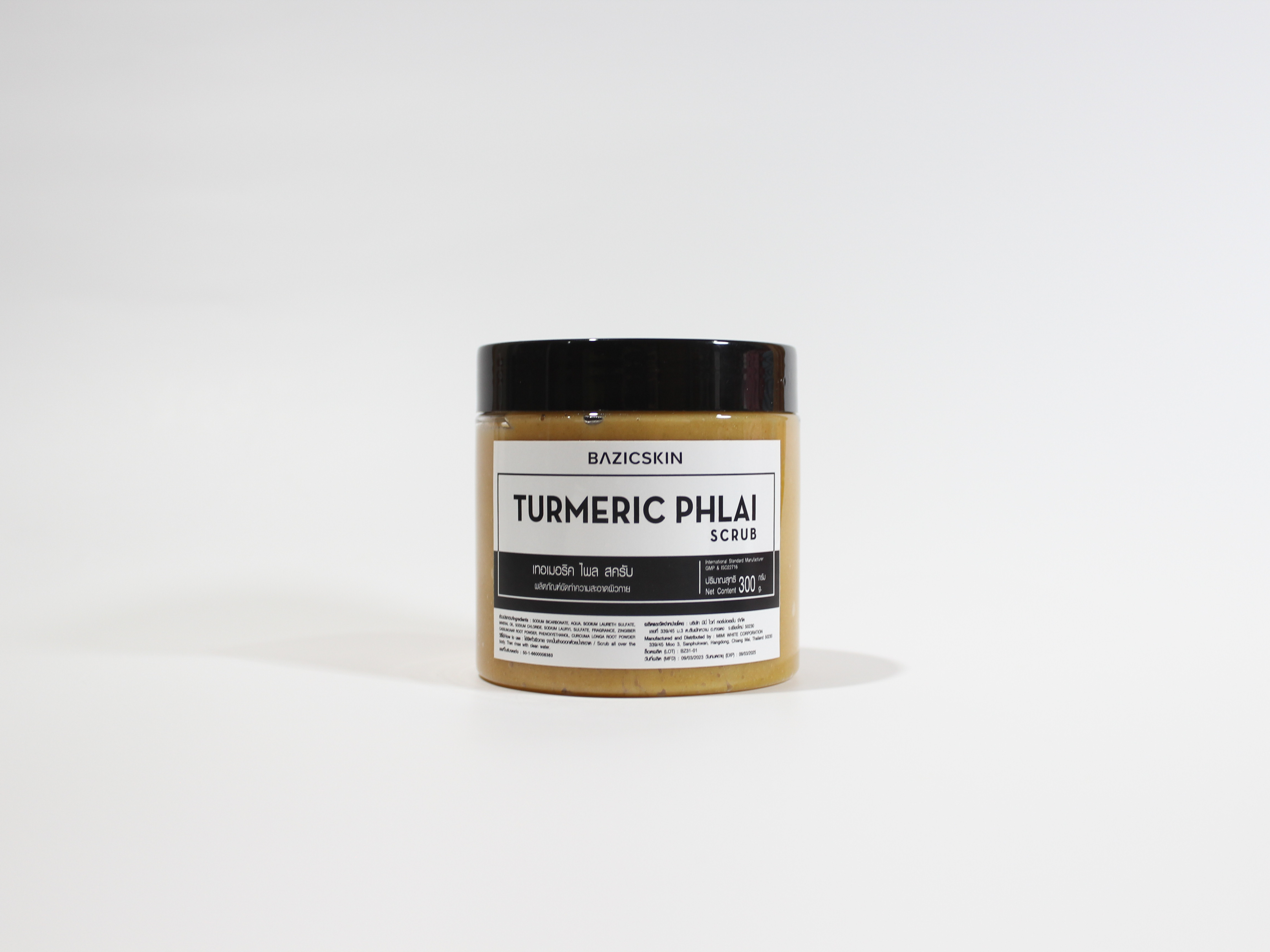 Ingredients : Sodium Bicarbonate, Aqua, Sodium Laureth Sulfate, Mineral Oil, Sodium Chloride, Sodium Lauryl Sulfate, Fragrance, Zingiber Cassumunar Root Powder, Phenoxyethanol, Curcuma Longa Root Powder.