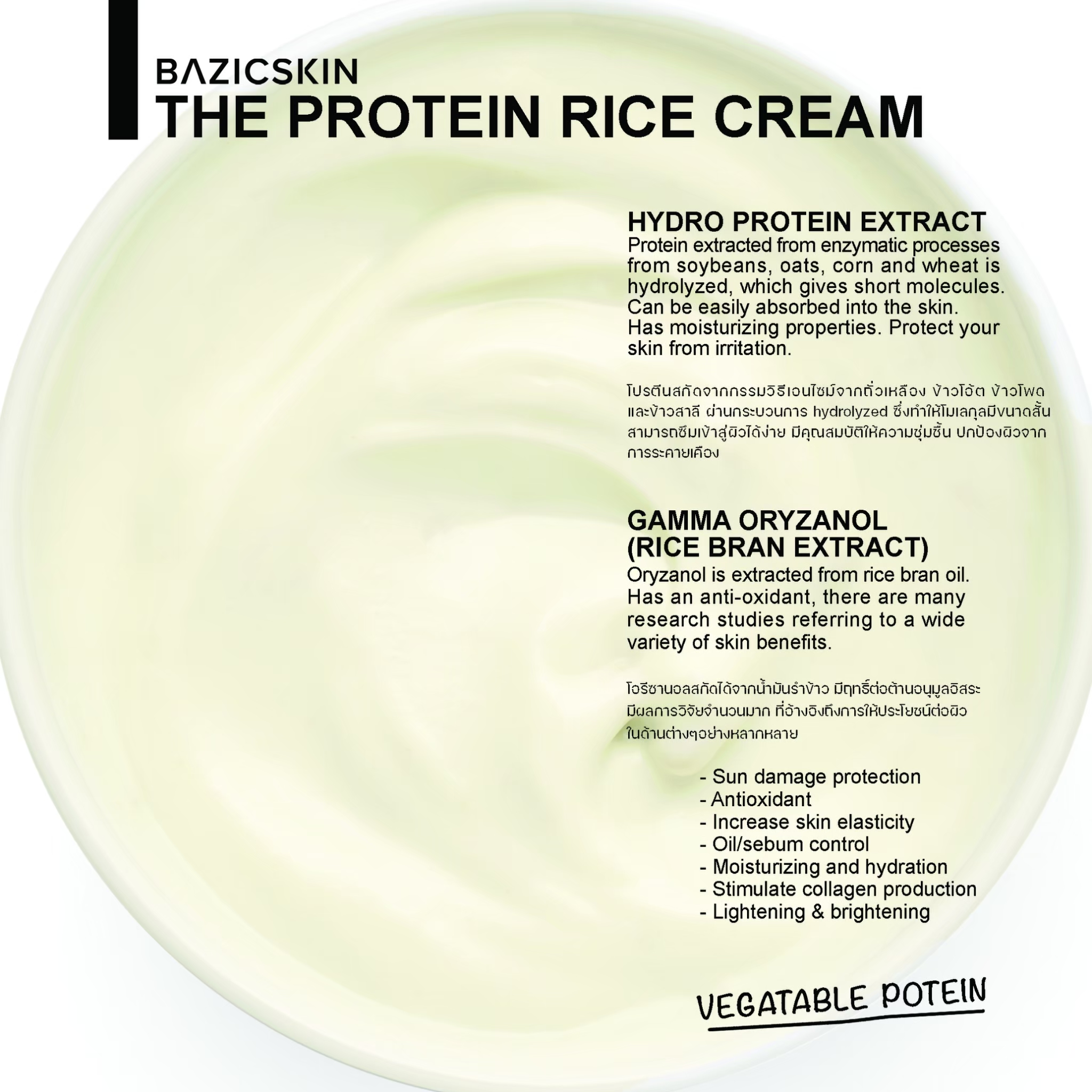 ครีมบำรุงผิวหน้าอุดมด้วยคุณค่าจากสารสกัดโปรตีนจากถั่วเหลือง ข้าวโอ้ต ข้าวโพด ข้าวสาลี และสารสกัดจากน้ำนมข้าว มีสรรพคุณช่วยรักษาความชุ่มชื้นของผิวหนัง ฟื้นฟูผิวที่แห้งเสีย และยังมีสารต้านอนุมูลอิสระ ช่วยลดริ้วรอย ลดการอักเสบ และลดการระคายเคืองของผิว ทำให้ผิวมีความนุ่ม ชุ่มชื้น