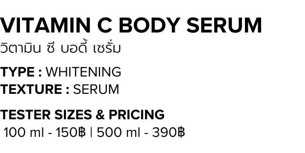 เซรั่มเข้มข้นที่อุดมไปด้วยวิตามิน C ซึ่งเป็นสารต่อต้านอนุมูลอิสระ ช่วยฟื้นบำรุงผิวอย่างเร่งด่วนให้จุดด่างดำและรอยสิวจางลง ผิวดูสว่าง กระจ่างใสขึ้น ผิวนุ่ม ฉ่ำน้ำและยังช่วยกระตุ้นการสร้างคอลลาเจน เพื่อผิวที่ขาวกระจ่างใสขึ้นพร้อมคืนความชุ่มชื้นแก่ผิวอย่างอ่อนโยน